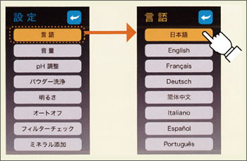 8ヵ国語(日本語、英語、フランス語、ドイツ語、中国語、イタリア語、スペイン語、ポルトガル語)の言語を選択でき、表示や音声案内(音声も同時に変わります)が設定されます。